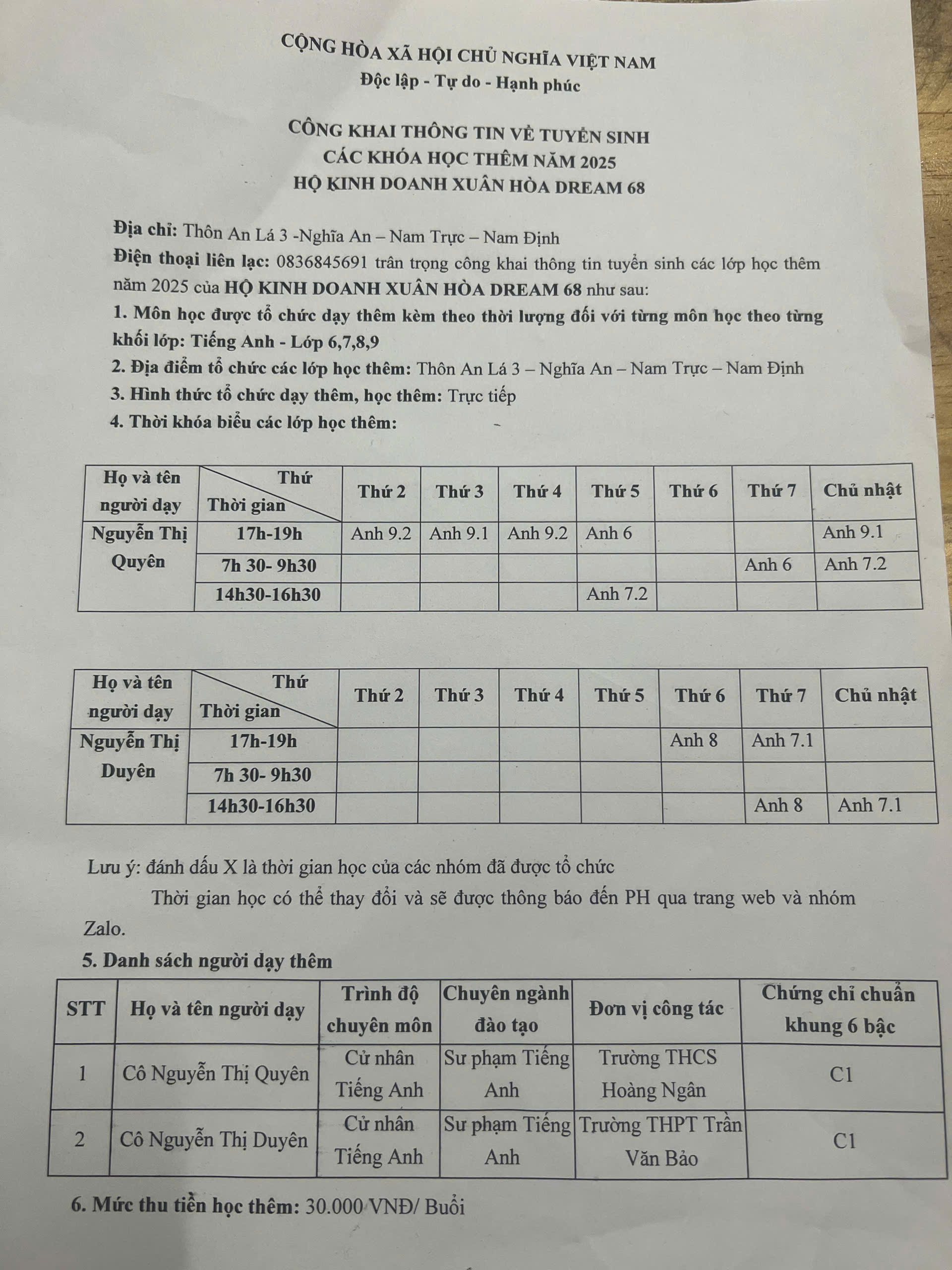 LỊCH GIẢNG DẠY LỊCH DẠY TUẦN(14/04/2025 – 20/04/2025 *Lưu ý: Lịch học có thể thay đổi, HKD sẽ thông báo trước cho Phụ huynh học sinh